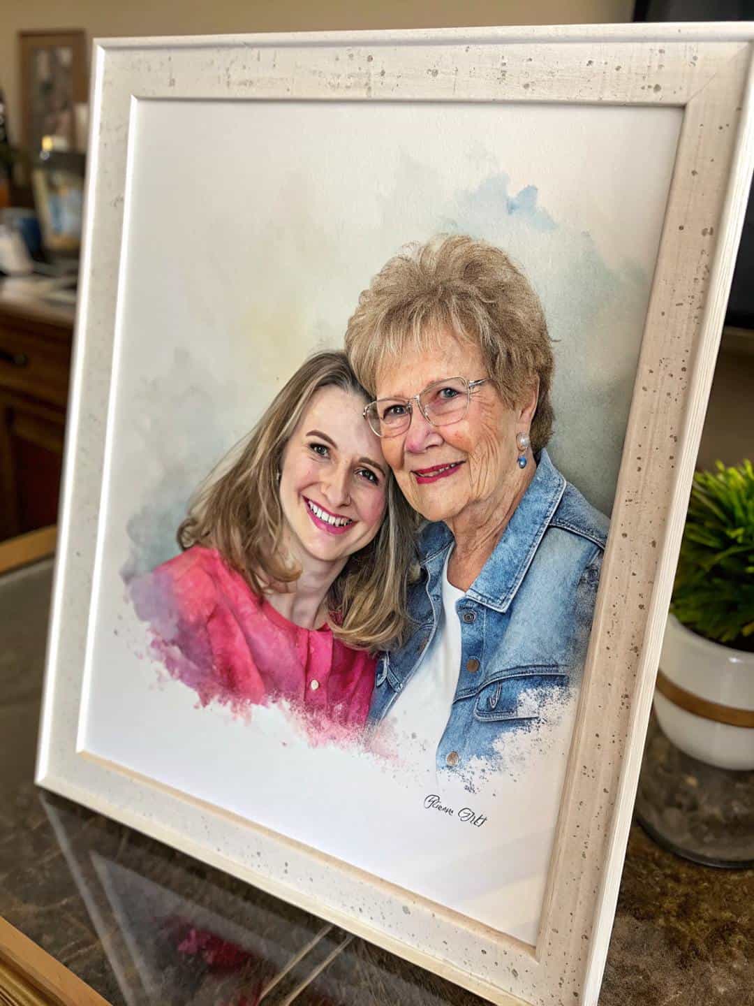 From the moment I reached out, the artist was incredibly responsive and patient. She sent the first sketch within 48 hours, and I was blown away by how beautiful it was. The soft color palette was perfect, and she even included personal touches like my mom's favorite silver-framed glasses. When my mom saw it, she started tearing up and couldn't stop smiling.