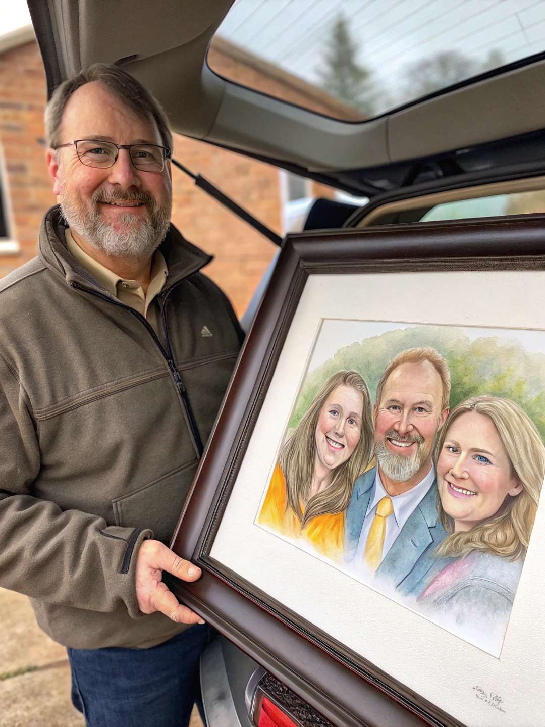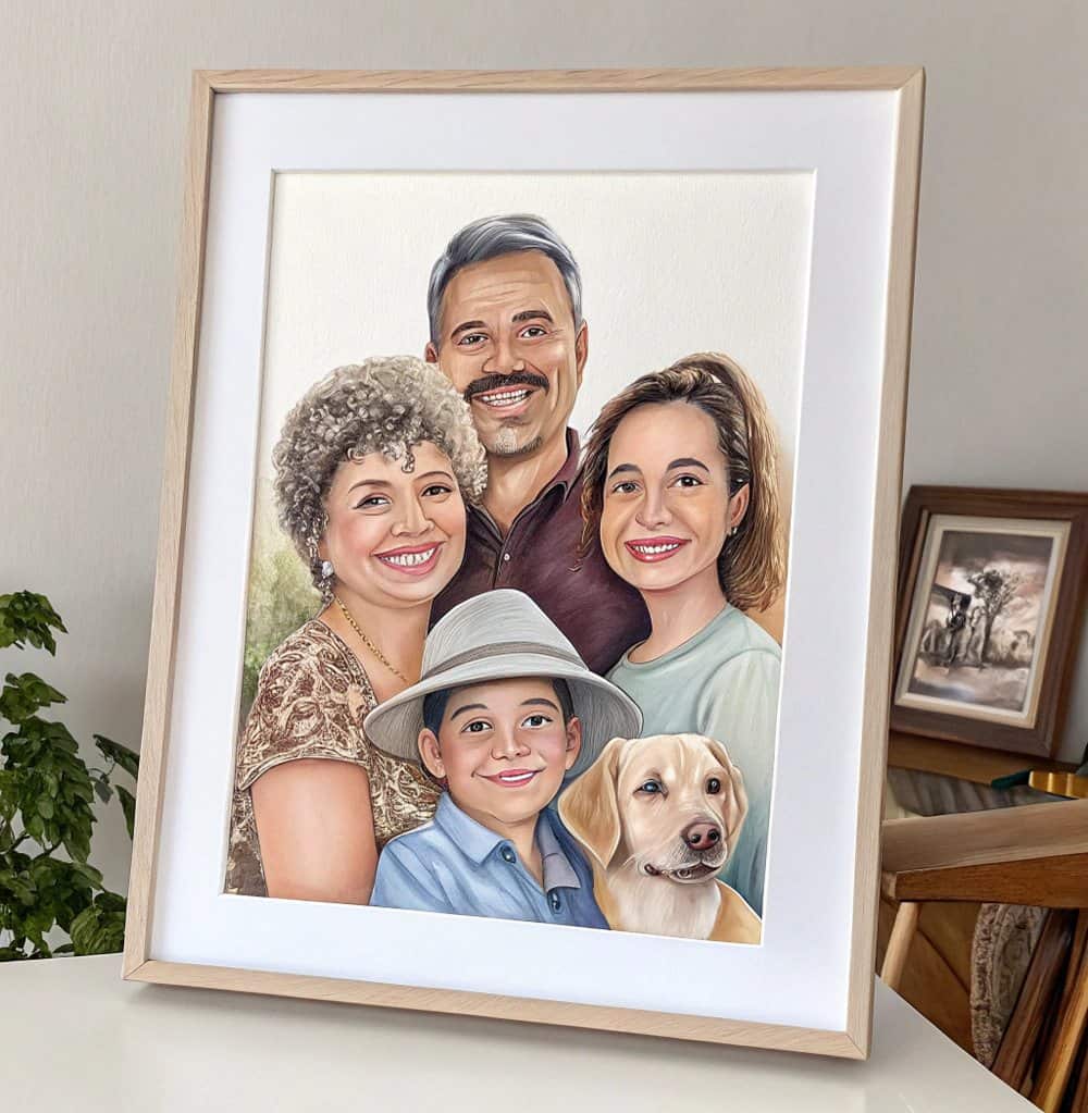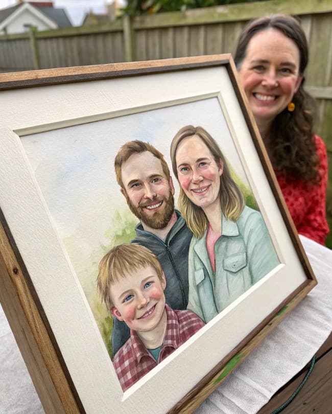 "So I decided to surprise my wife with a custom watercolor family portrait after we moved to LA. New city, new house, and I thought – hey, why not add a little personal touch to our new home? I have to say, it was a hit! My wife wasover the moonwhen she saw it. The portrait turned out amazing – it’s me, my wife, and our son, looking all happy and artsy. Honestly, I was a little worried it might turn out cheesy, but the artist, Lily, really nailed it. She was super patient with me, helping tweak and adjust things until I was completely happy. She even made sure to capture our son's "I’m too cool for this" face – which, as any parent knows, is a pretty important detail. Totally worth it! Now it’s hanging proudly in our living room and honestly, I think the new house finally feels like home."