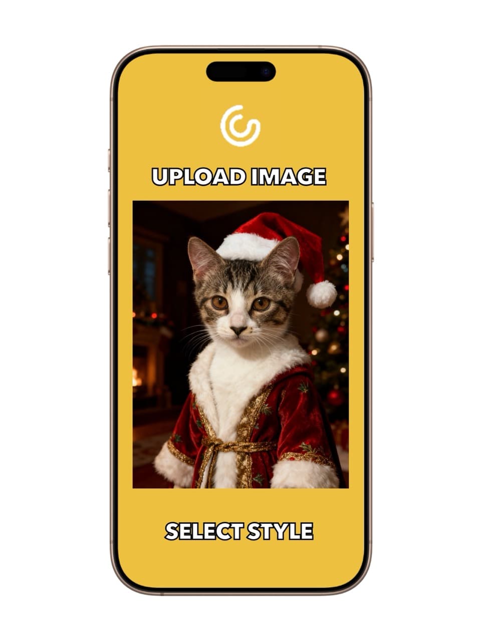 Turn Your Pet into the Star of Christmas Magic Celebrate the holidays with a one-of-a-kind custom lenticular portrait of your furry friend, styled in festive Christmas fashion. From a cozy winter sweater, to a charming Santa suit, to a regal holiday robe, each portrait shifts between three heartwarming looks as you view it from different angles—bringing your pet’s Christmas spirit to life in a truly enchanting way.