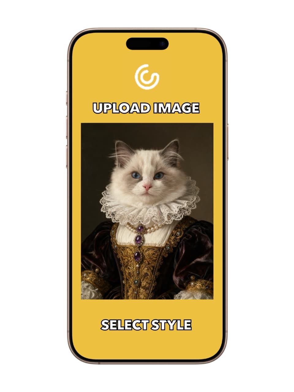 Unlike traditional portraits, each lenticular piece unveils three aristocratic looks within a single frame. Viewed from left, center, and right, new images emerge, transforming your pet into a distinguished noble with jeweled crowns, golden embroidery, and regal charm inspired by baroque artistry.