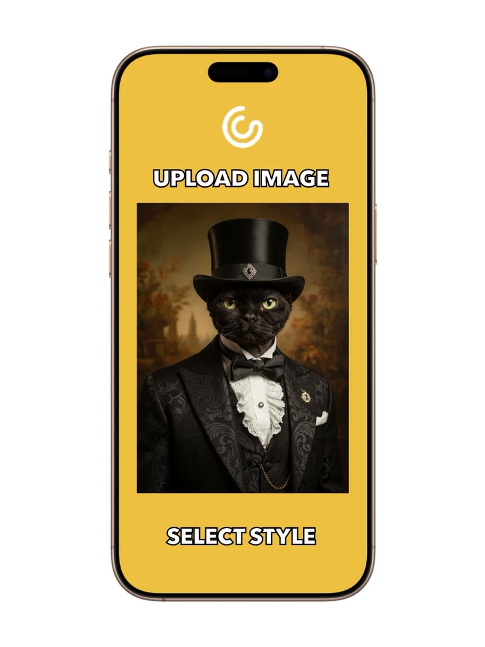 Unlike traditional portraits, each lenticular piece brings your pet to life with three refined Victorian looks in one frame. Tilt it left, center, or right and watch your pet transform from a gentleman in a classic black suit with top hat and watch chain, to a regal figure in golden brocade, or a bold character in bright yellow formal attire.