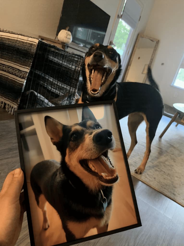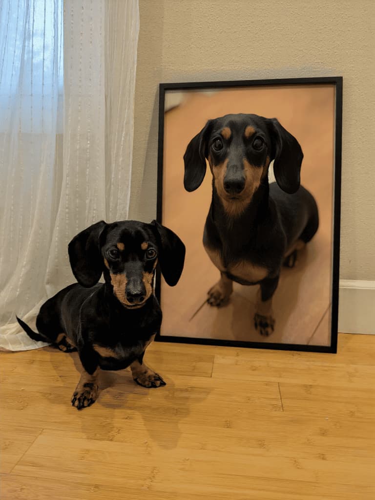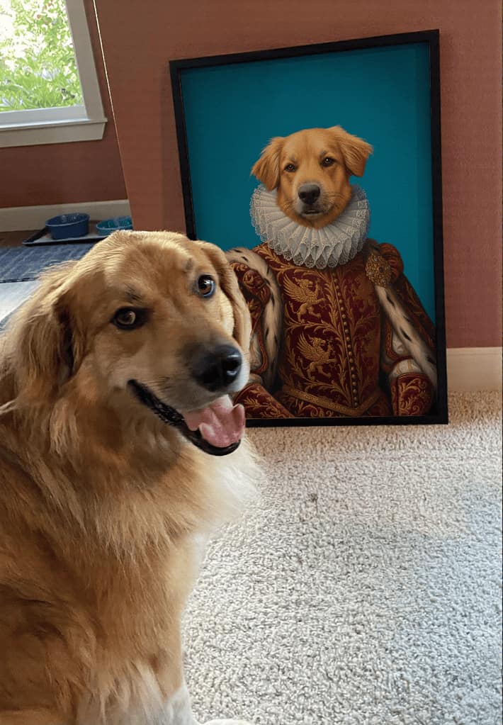 I can’t stop smiling every time I walk past my dog's portrait! I ordered a royal style portrait of my dog, and it’s just 100% perfect. The colors are rich and the image shifts beautifully when you move, it almost feels alive. Everyone who visits our home loves it. The quality is amazing and the seller was wonderful to work with. Such a fun and classy way to show off your pet!