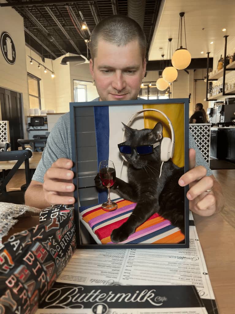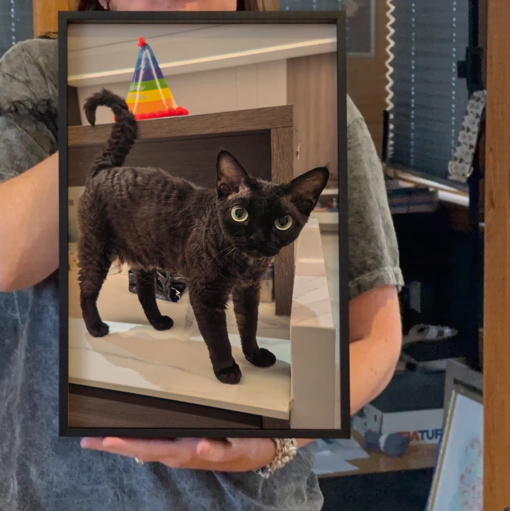 I absolutely love the lenticular photo of my cat Luna! It perfectly captures her playful spirit. This custom artwork is a wonderful addition to our home!