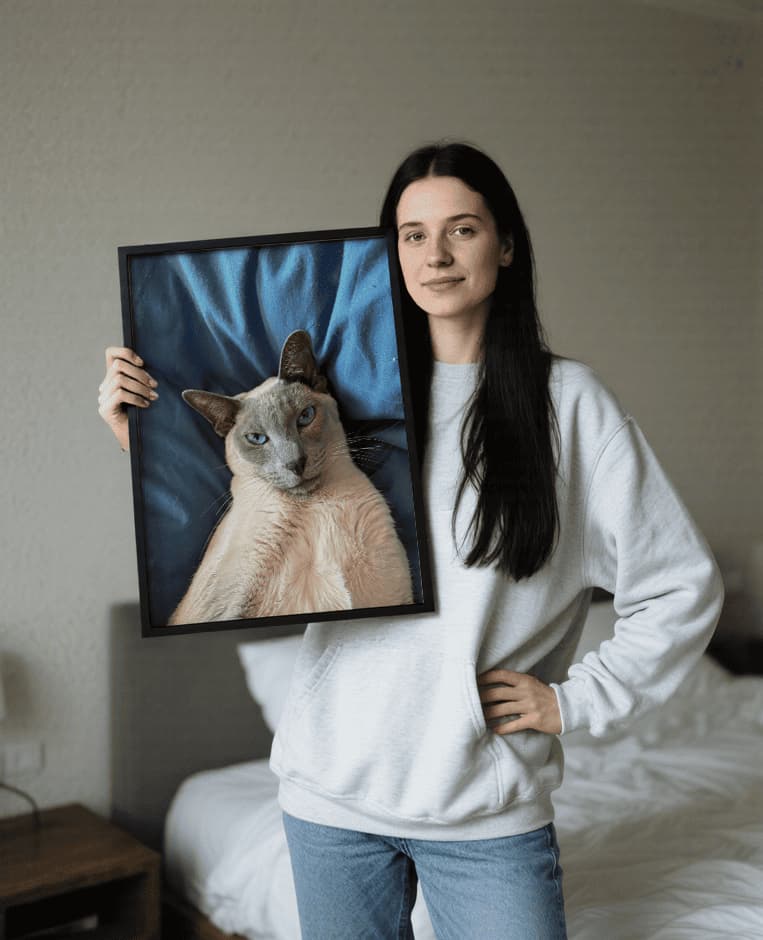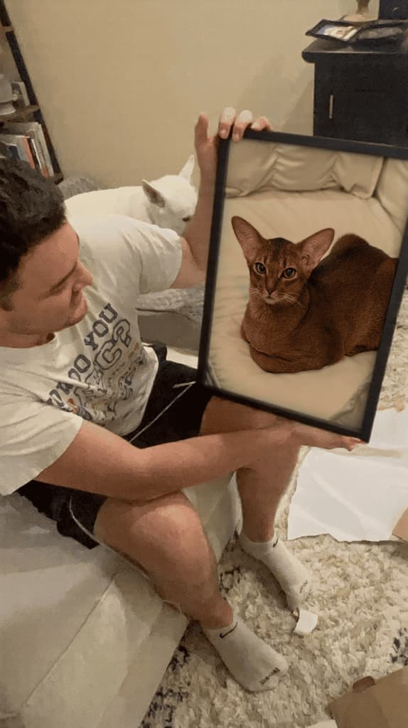 I ordered a king-style portrait of our cat as a gift for my kid, and we both absolutely love it. The print has this magical shimmer that changes with the light, bringing out every detail of our cat’s face. The craftsmanship is top quality, and it arrived safely and quickly. It’s such a beautiful and meaningful keepsake! Highly recommend for any pet lover!