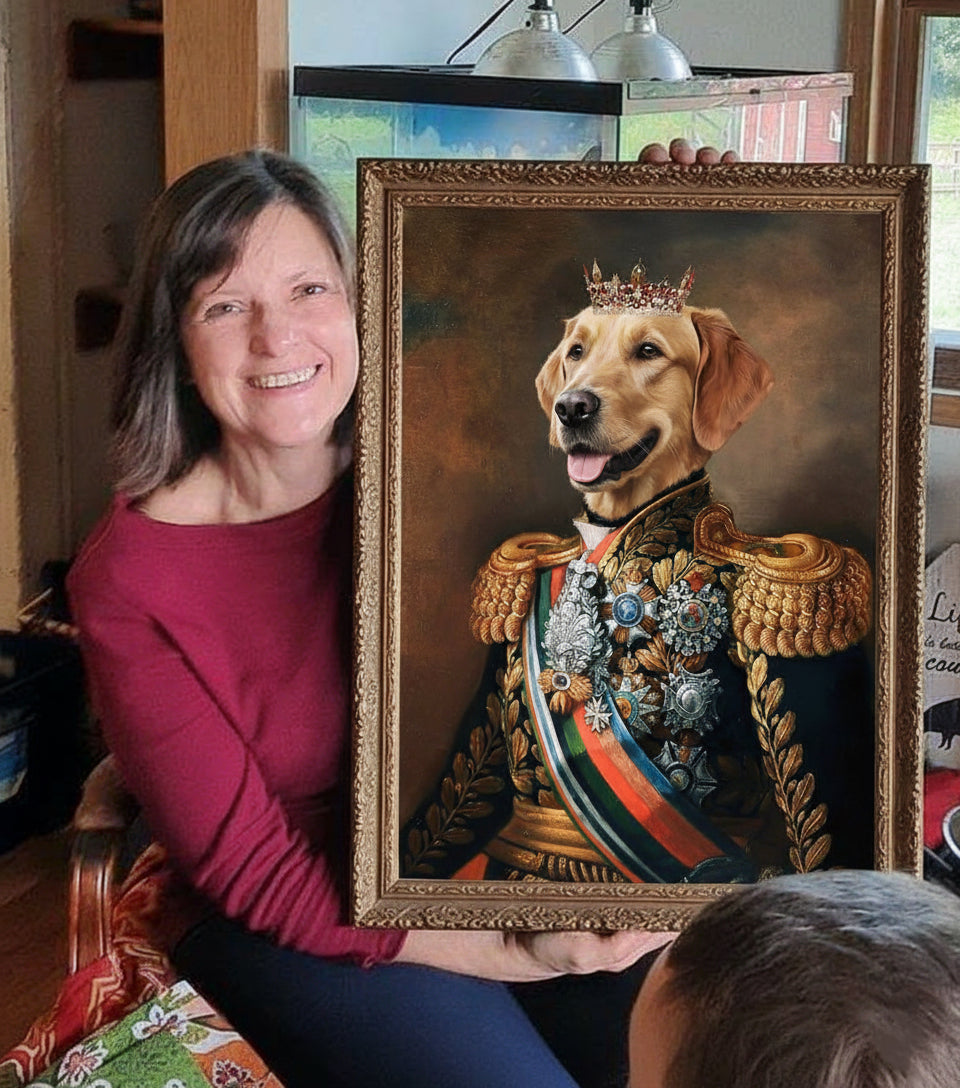 I can’t stop smiling every time I walk past my dog's portrait! I ordered a royal style portrait of my dog, and it’s just 100% perfect. The colors are rich and the image shifts beautifully when you move, it almost feels alive. Everyone who visits our home loves it. The quality is amazing and the seller was wonderful to work with. Such a fun and classy way to show off your pet!
