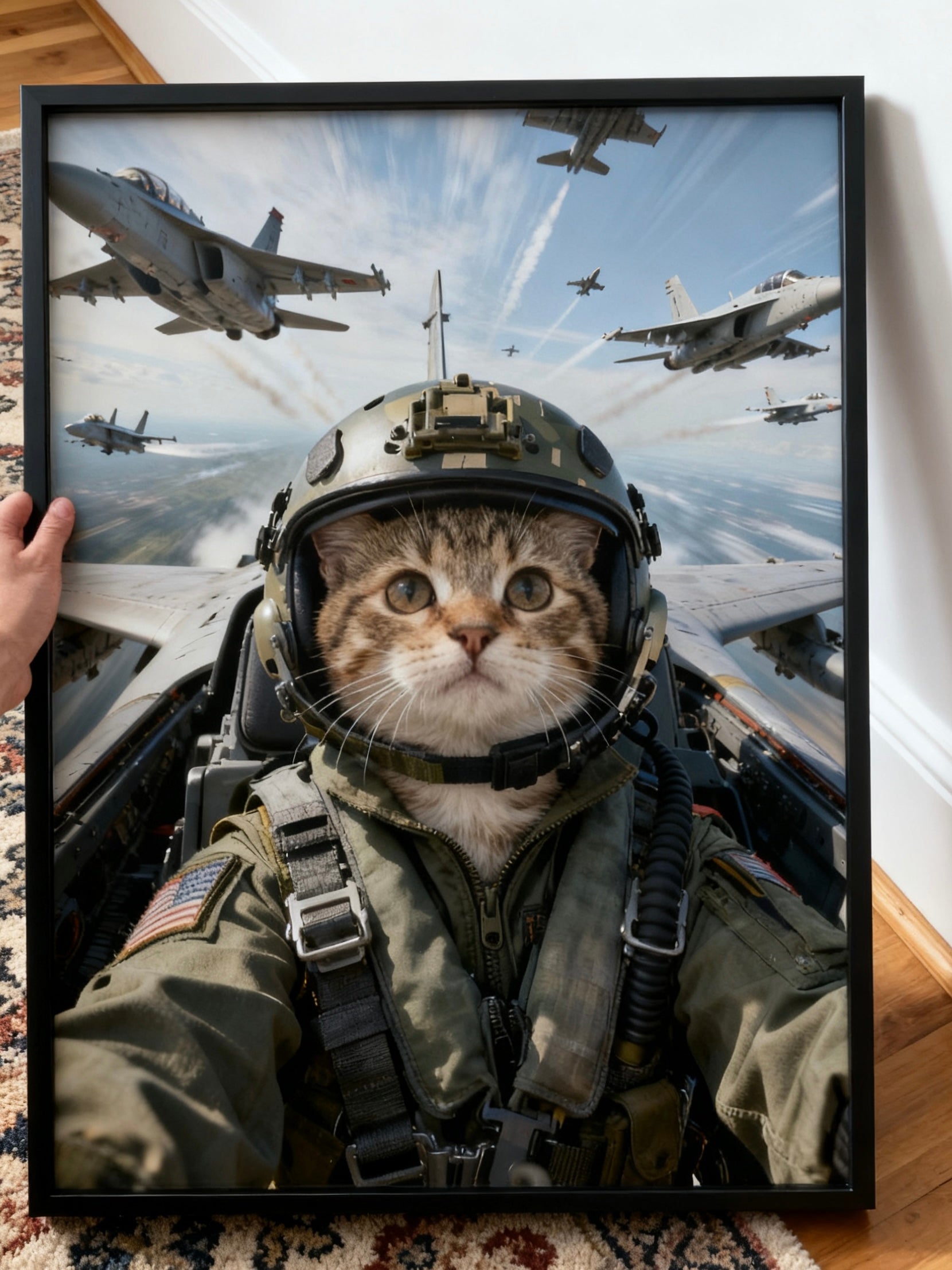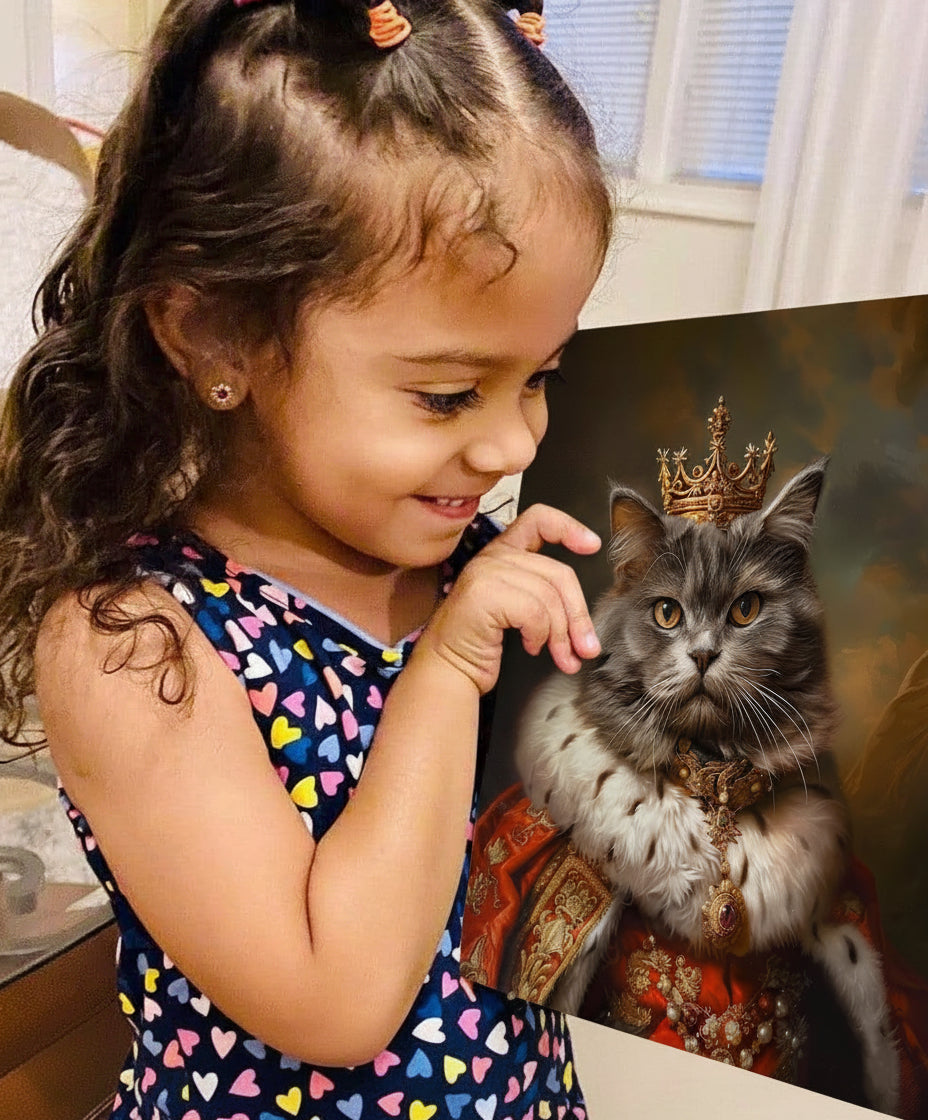 I ordered a king-style portrait of our cat as a gift for my kid, and we both absolutely love it. The print has this magical shimmer that changes with the light, bringing out every detail of our cat’s face. The craftsmanship is top quality, and it arrived safely and quickly. It’s such a beautiful and meaningful keepsake! Highly recommend for any pet lover!